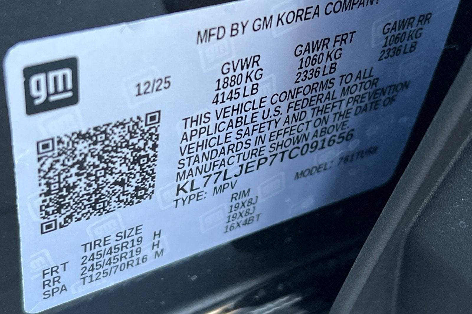 - Tires, 245/45R19 all-season, blackwall