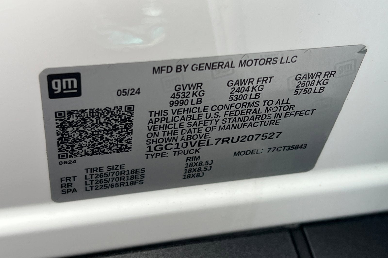 - Tires, LT265/70R18, all-season blackwall